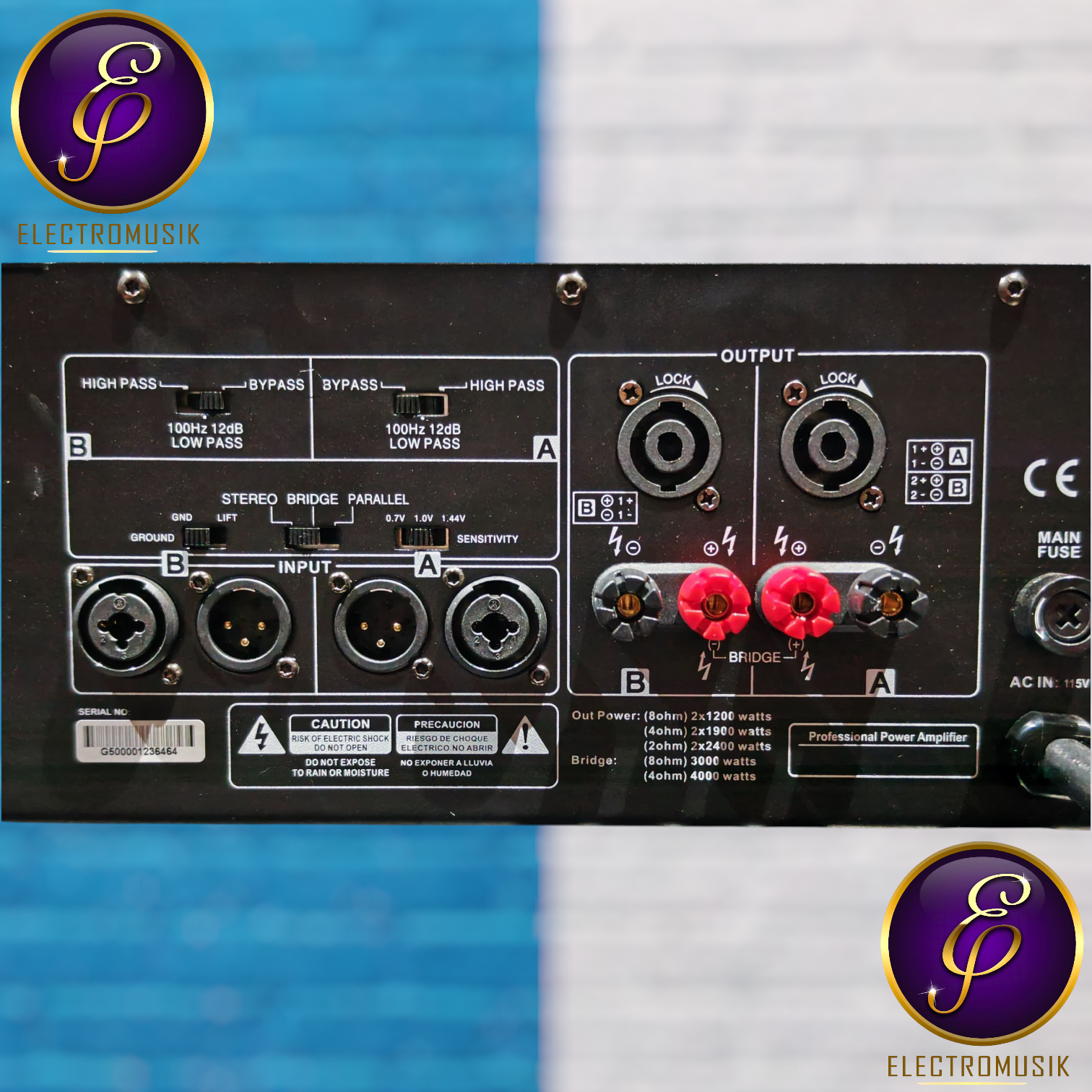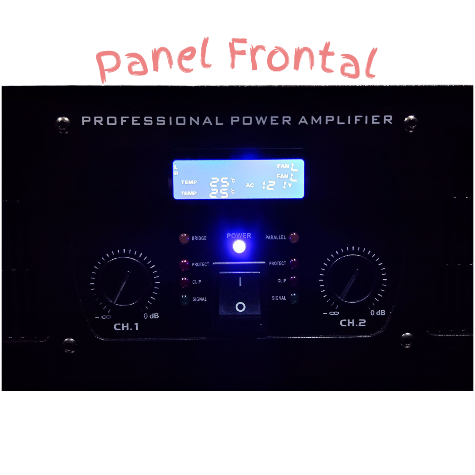 Potencia: 2X1200 W (8 ohm), 2X1900 W (4 ohm) y 2X2400 W (2 ohm)