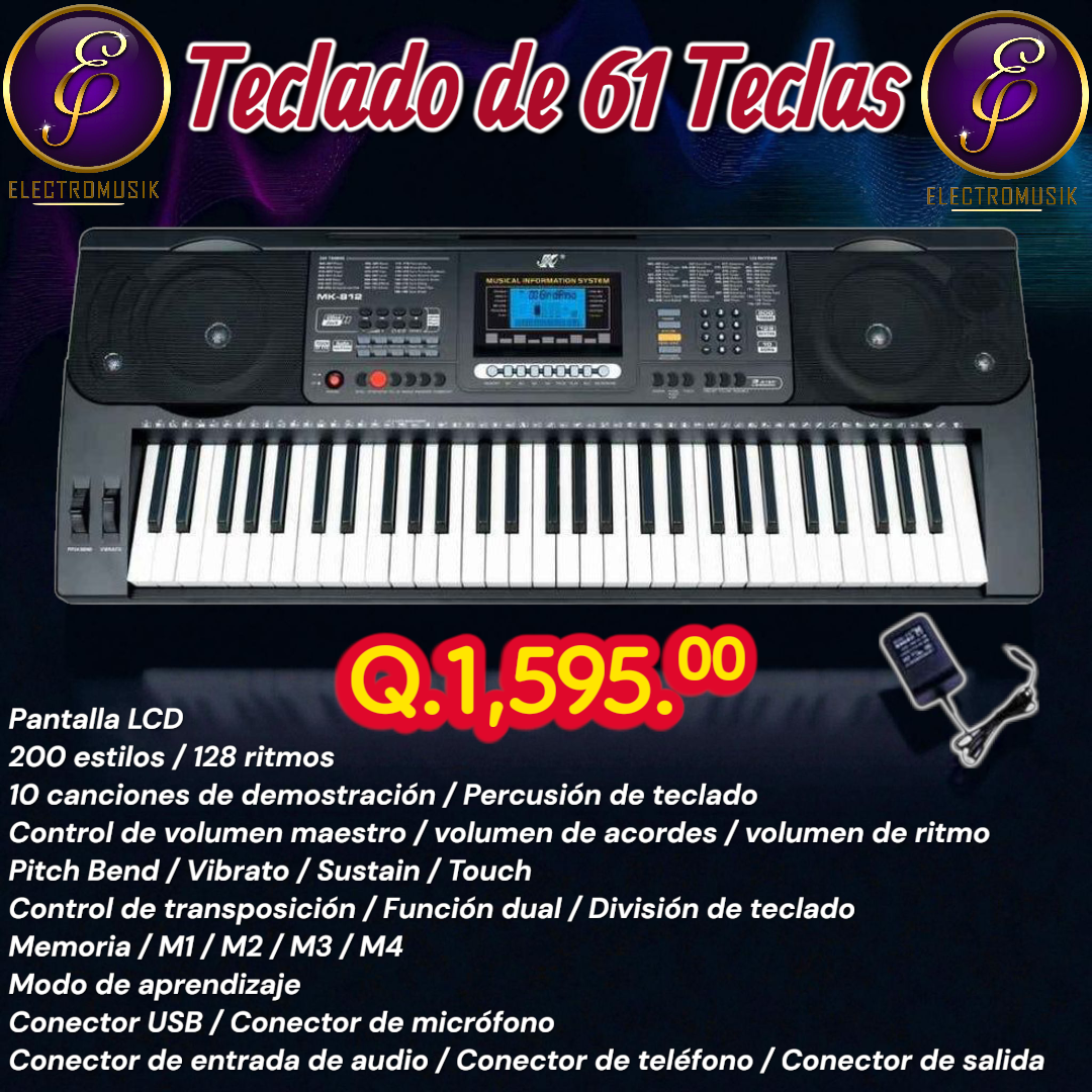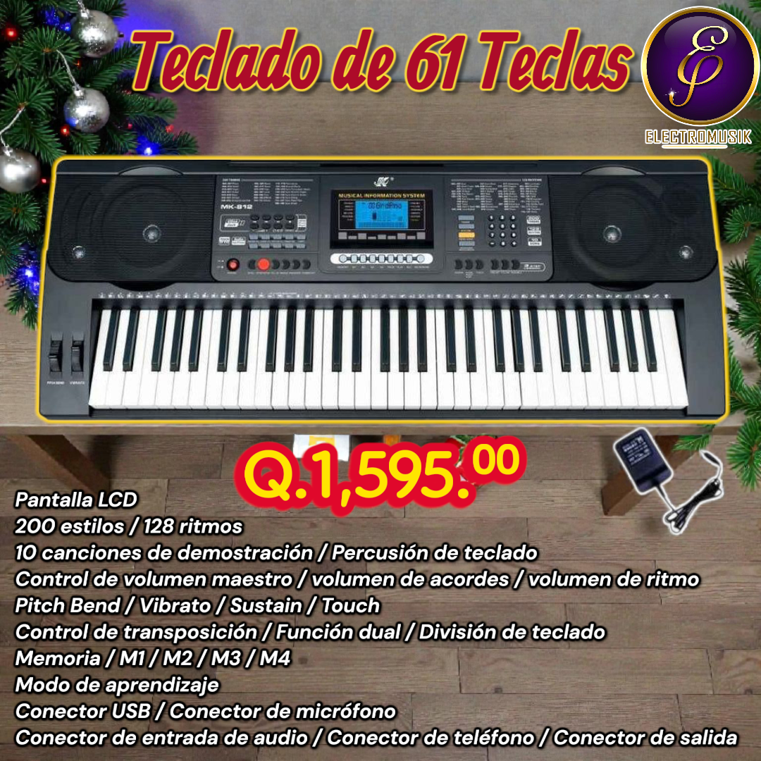 - Teclado de piano de 61 teclas con sensibilidad táctil